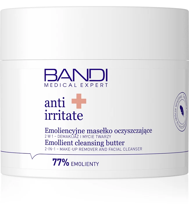 BANDI Emoliencyjne masełko oczyszczające 2w1 to innowacyjny produkt łączący funkcję demakijażu z oczyszczaniem skóry. Jego delikatna, emoliencyjna formuła skutecznie usuwa makijaż z twarzy, oczu i ust, jednocześnie oczyszczając skórę z nadmiaru sebum i zanieczyszczeń.