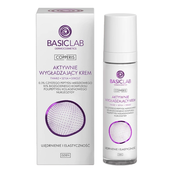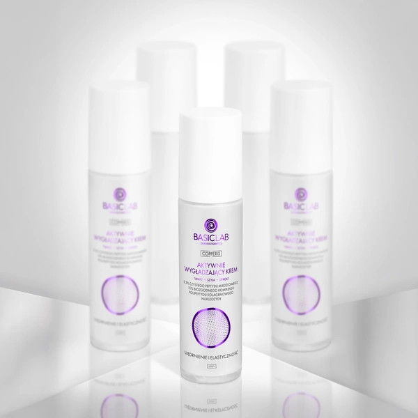 BASICLAB Aktywnie liftingujący krem na noc do twarzy, szyi i dekoltu 0,3% czystego peptydu miedziowego, Stymulacja i Regeneracja 50 ml