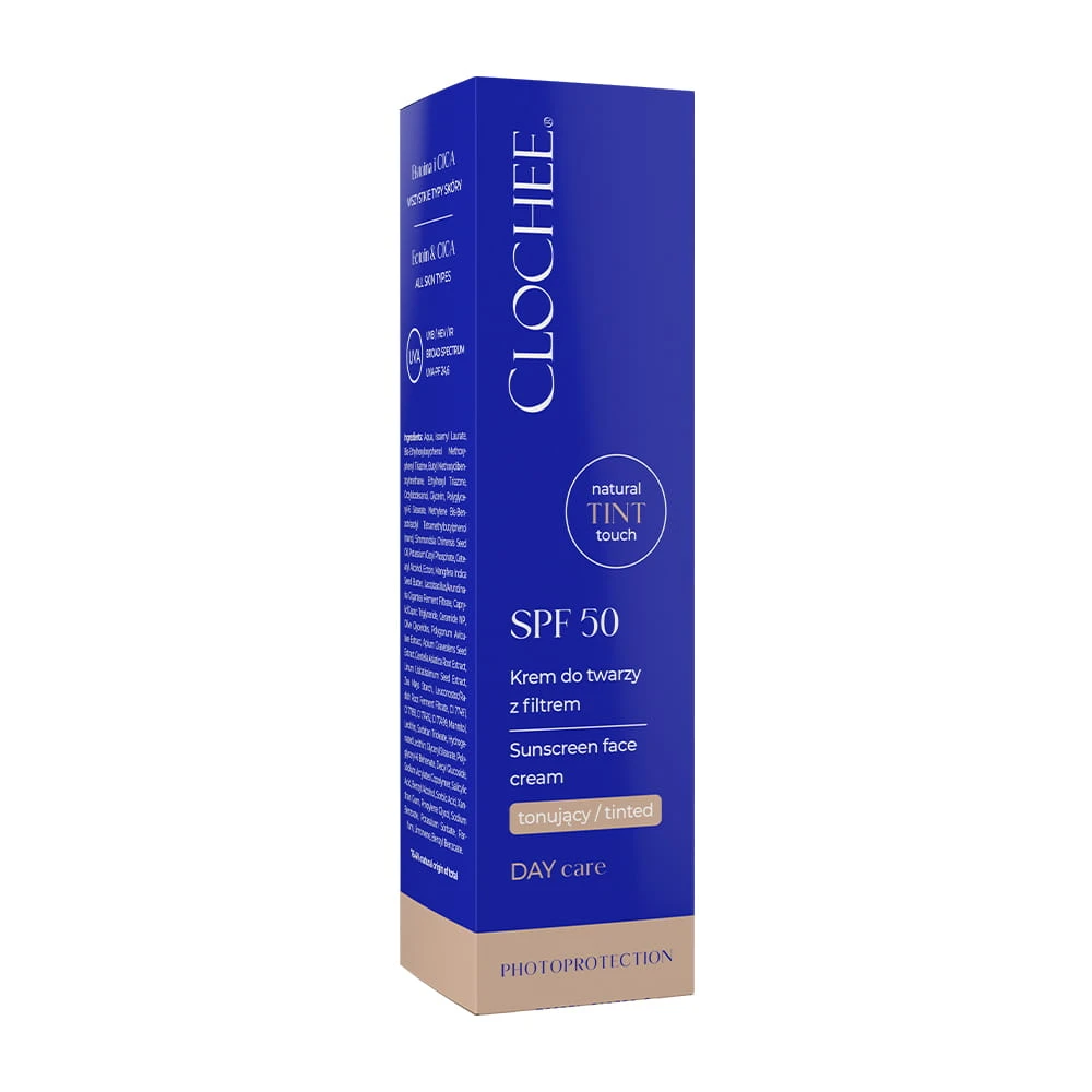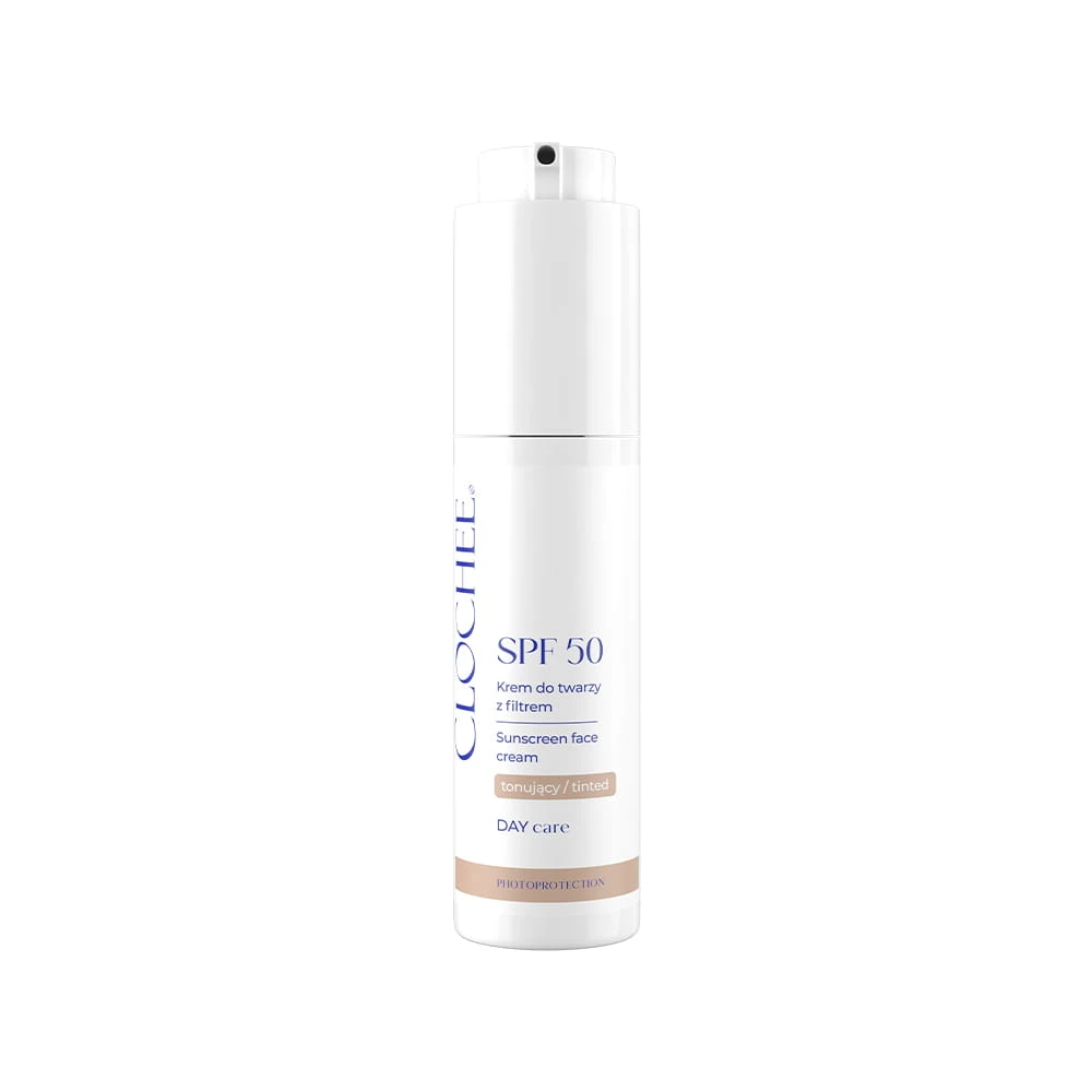 CLOCHEE Krem do twarzy z filtrem SPF 50 – tonujący z ektoiną i CICĄ 50 ml