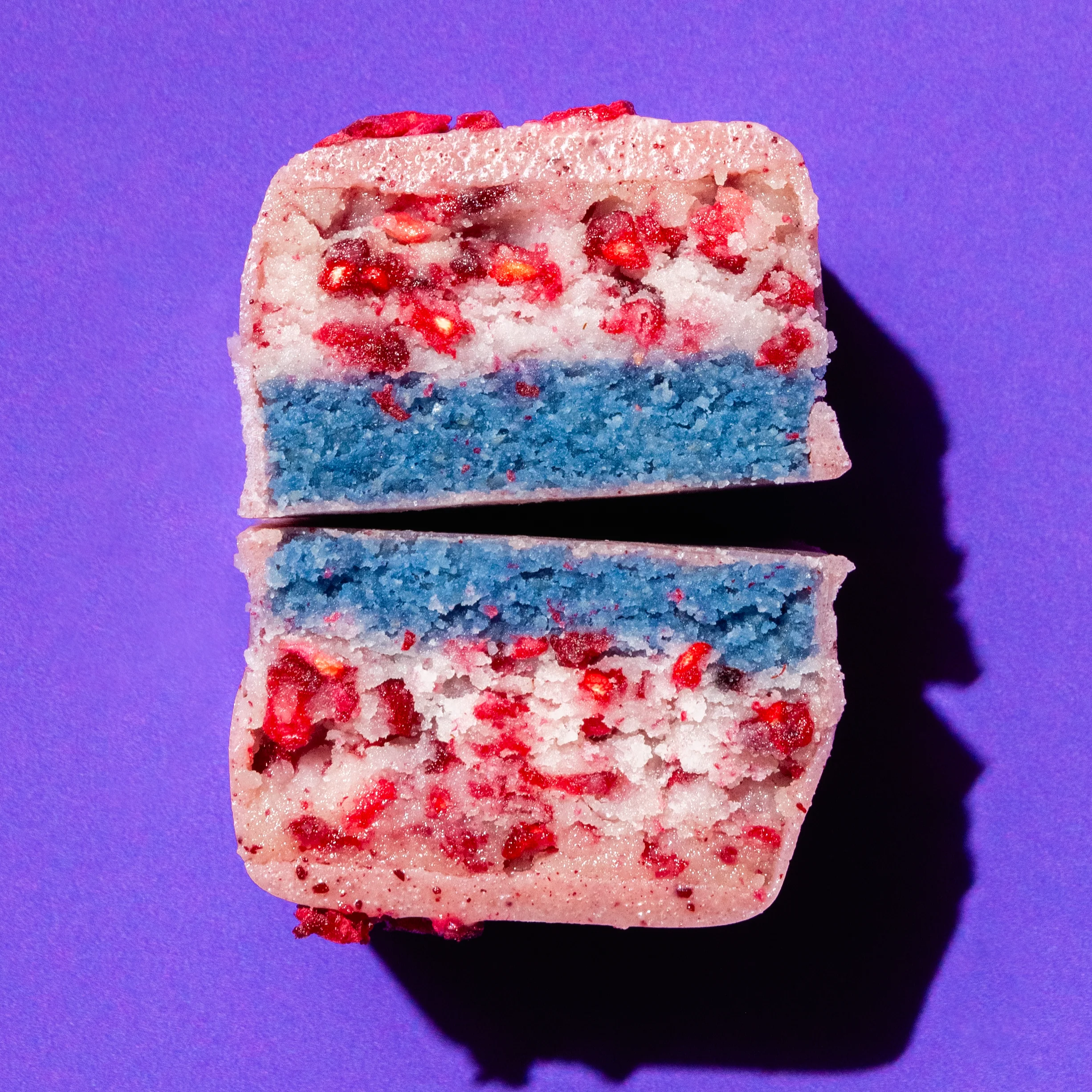 - Tłuszcz shea i proszek z kwiatów grochu motylkowego: wspierają gładką teksturę i naturalny kolor batona.