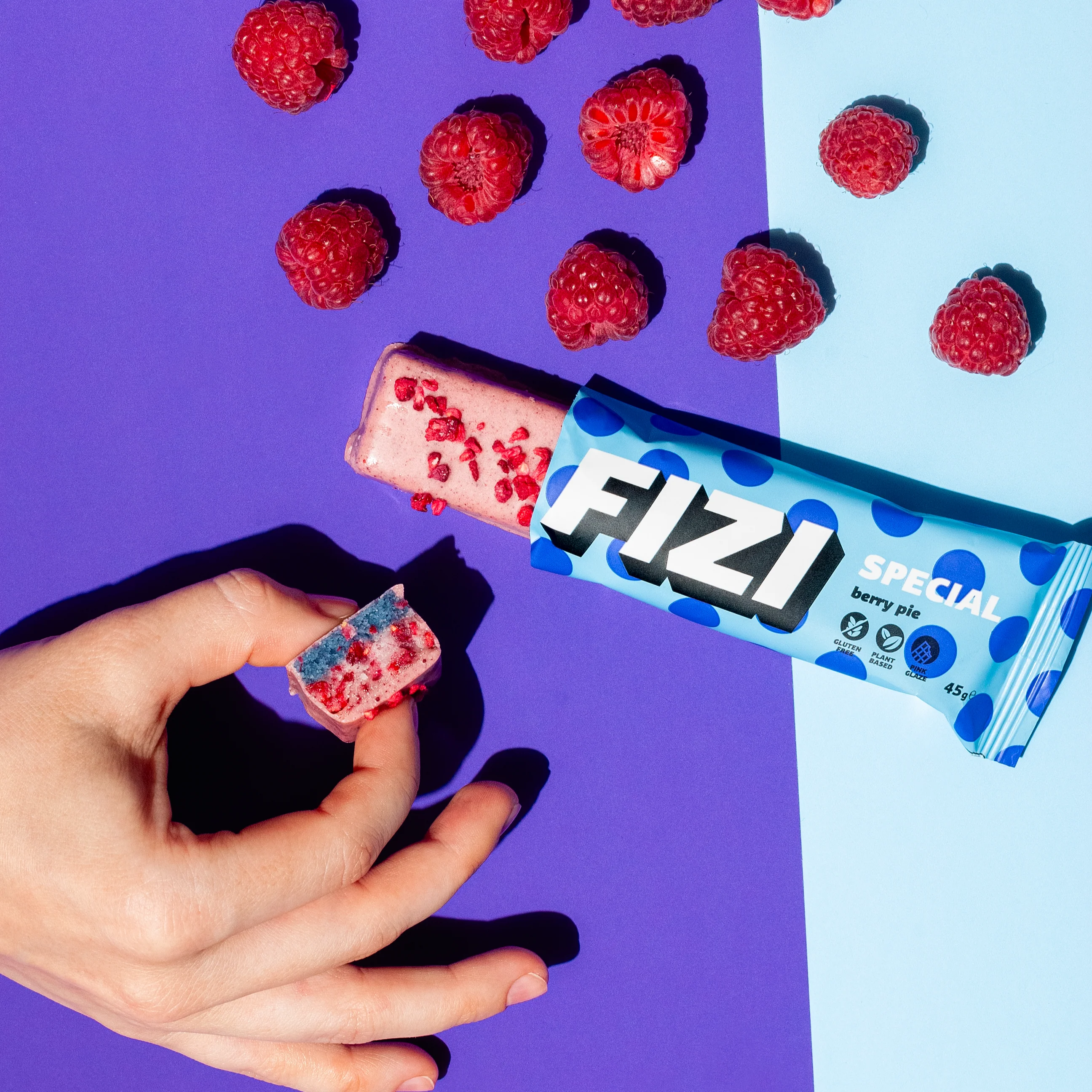 BATON W BIAŁEJ POLEWIE “BERRY PIE” to wyjątkowa propozycja od FIZI – marki tworzącej wegańskie, bezglutenowe przekąski bez dodatku białego cukru. Ten baton to pyszna, lekka i pożywna alternatywa dla klasycznych słodyczy, pełna naturalnych składników roślinnych.