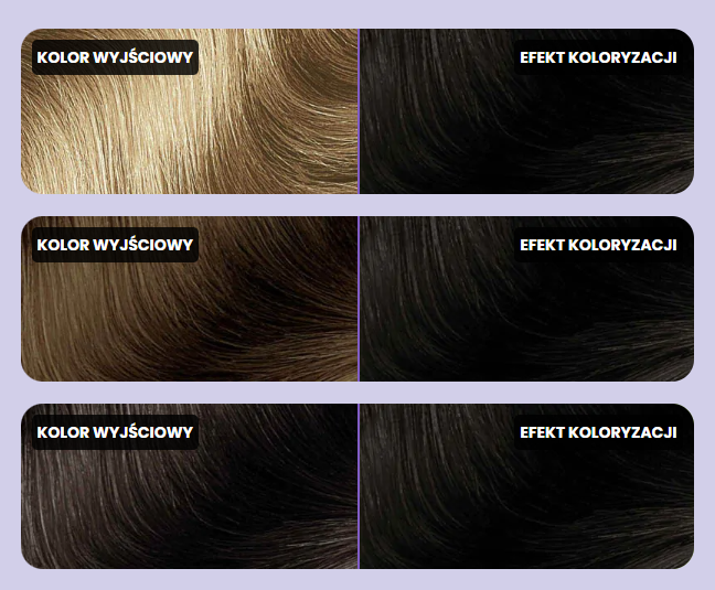 - Efekt wizualny: Zapewnia błyszczący kolor pełen refleksów, bez siwych pasm i widocznych odrostów.