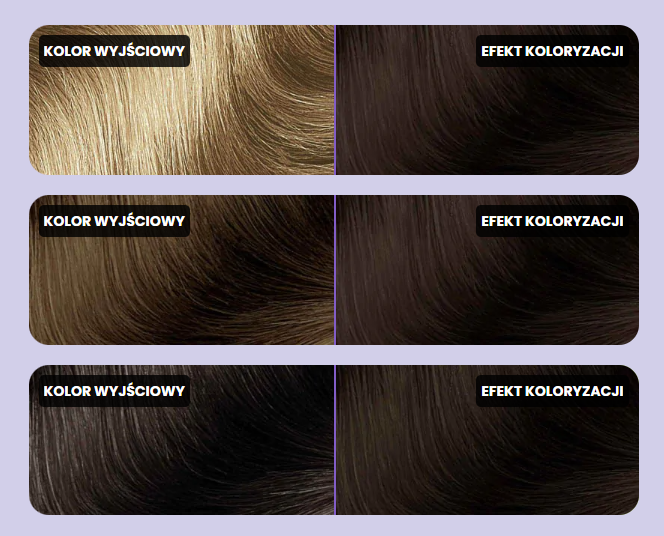 - Trwały kolor: Zapewnia pełen refleksów kolor bez siwych pasm i widocznych odrostów.