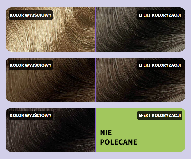 - Trwałość: Zapewnia pełen refleksów kolor bez siwych pasm i widocznych odrostów.