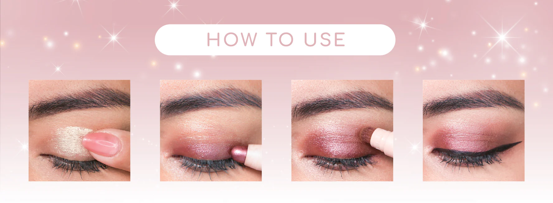 Aplikuj kosmetyk na powiekę bezpośrednio ze sztyftu. Następnie przy użyciu dołączonego do produktu pędzelka lub opuszków palców, delikatnym ruchem rozetrzyj go na powiece. W celu uzyskania mieniącej kreski, użyj precyzyjnego, skośnego pędzelka i wyrysuj linię wzdłuż linii rzęs. Pamiętaj, aby po każdym użyciu wyczyścić pędzelek, co zapewni jego higienę i trwałość.