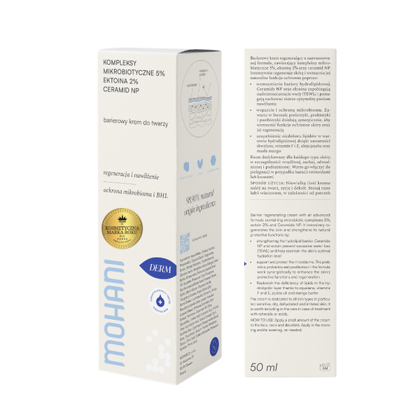 MOHANI Regenerujący krem barierowy z ektoiną 2%, kompleksem mikrobiotycznym 5% i ceramidem NP 50 ml