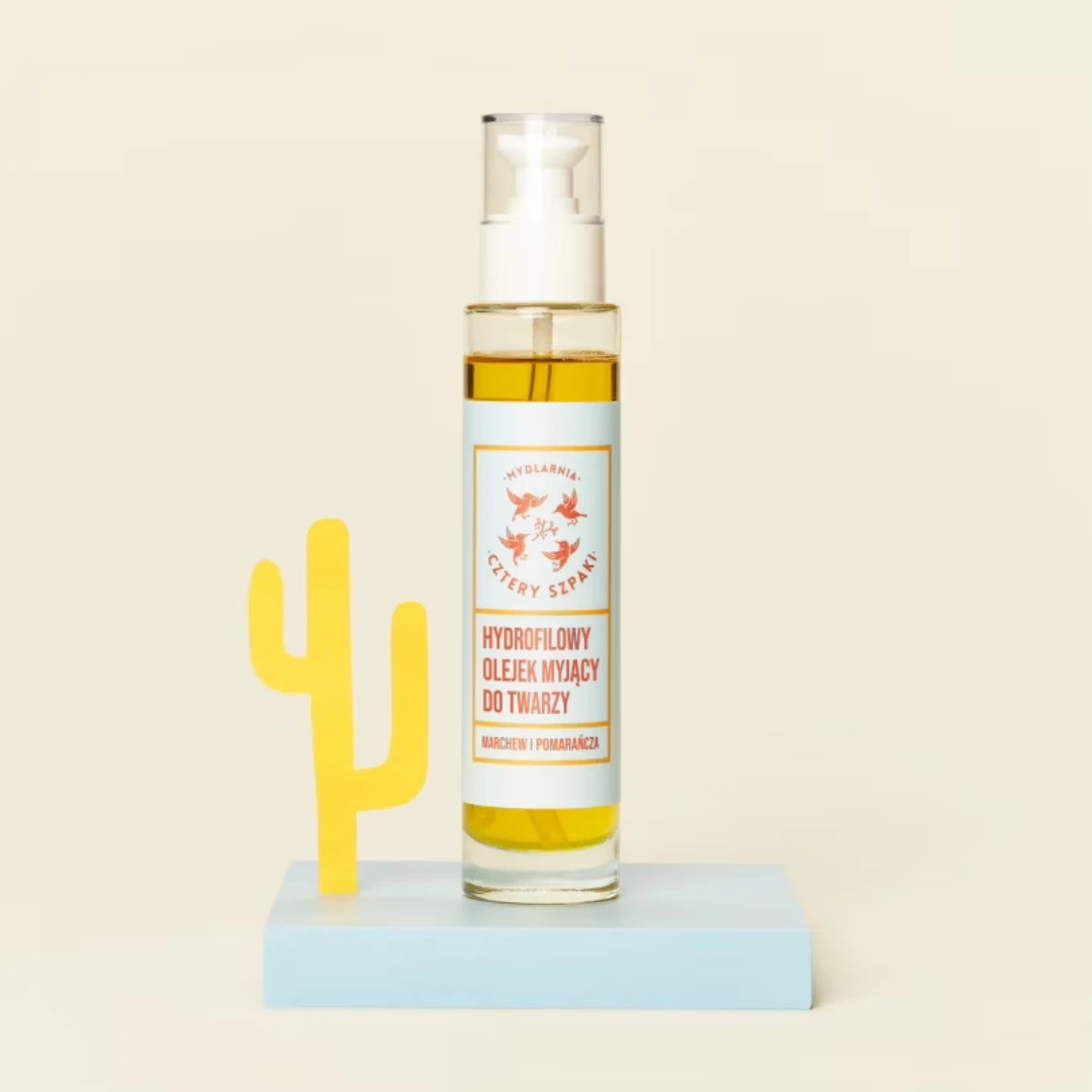 Hydrofilowy olejek myjący Marchew i Pomarańcza to skuteczny produkt do demakijażu i oczyszczania twarzy. Dzięki zawartości emulgatorów w kontakcie z wodą zmienia się w delikatną emulsję, która usuwa zanieczyszczenia, makijaż oraz kremy z filtrem SPF, jednocześnie pielęgnując skórę.