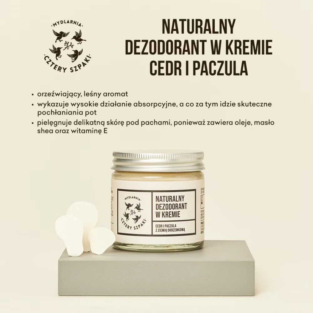 MYDLARNIA CZTERY SZPAKI Naturalny dezodorant w kremie Cedr i Paczula z dodatkiem sody 60 ml
