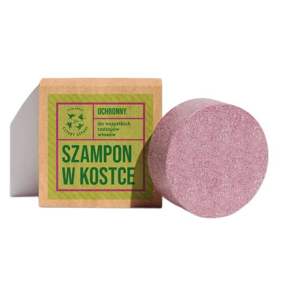 Ochronny szampon w kostce Leśna Róża od Czterech Szpaków skutecznie oczyszcza skórę głowy i włosy, pozostawiając je świeże, lekkie i uniesione u nasady. Formuła oparta na łagodnych detergentach pochodzenia roślinnego i naturalnym analogu silikonu pomaga wydłużyć trwałość koloru włosów farbowanych, ograniczając ich matowienie i blaknięcie.