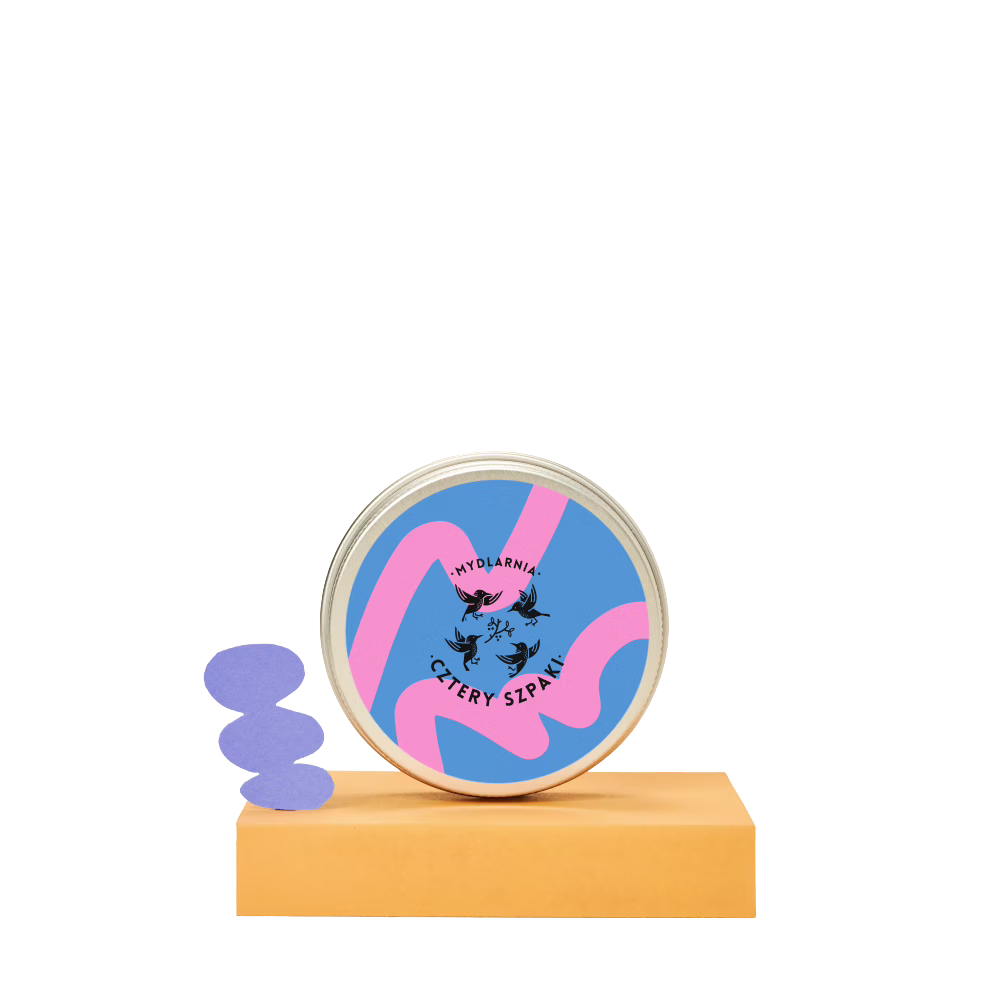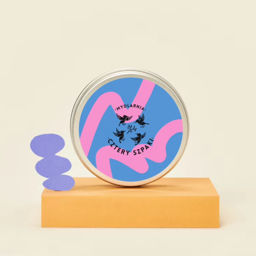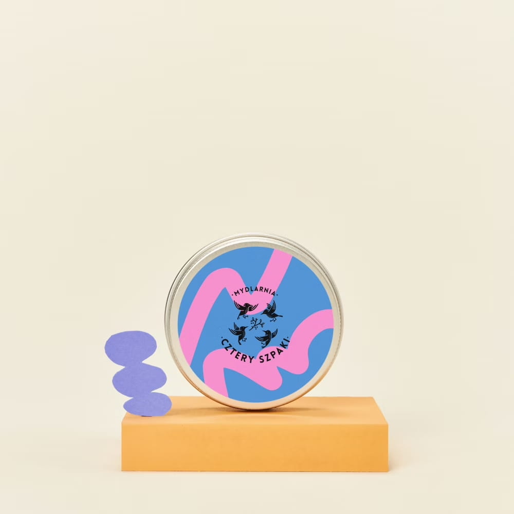 MYDLARNIA CZTERY SZPAKI Okrągła puszka na szampon/odżywkę granatowo-różowa