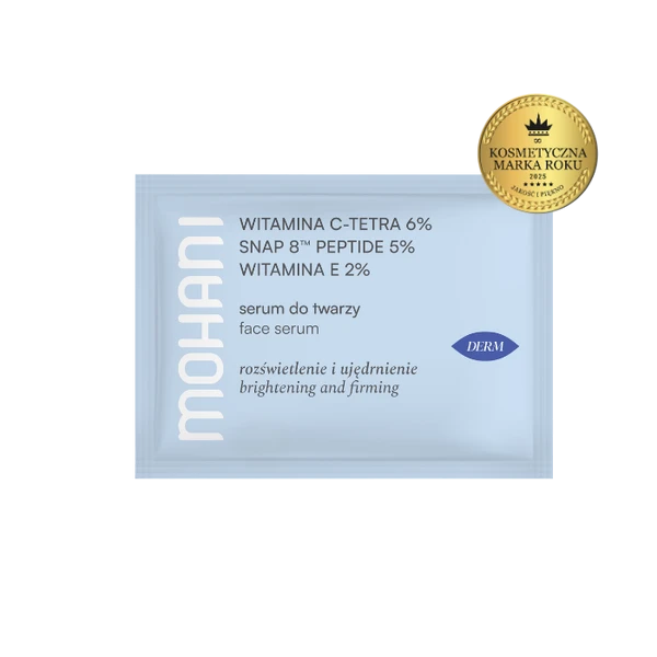PRÓBKA MOHANI Napinająco-rozświetlające serum do twarzy z ultrastabilną Witaminą C TETRA 6%, neuropeptydem SNAP 8™ 5% i Witaminą E 2% 1,5 ml