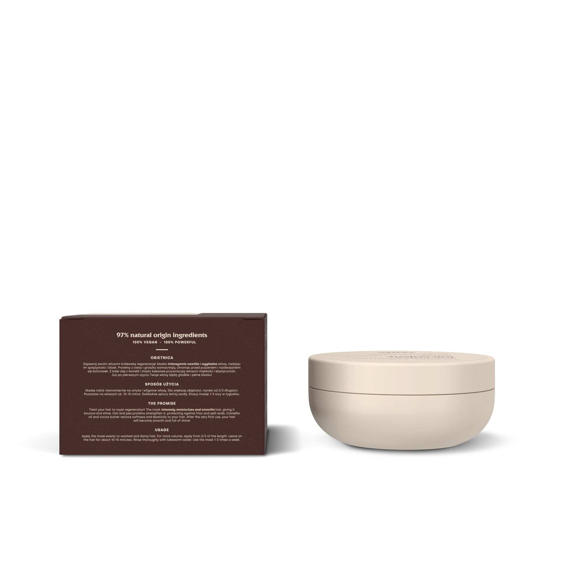 Zapewnij swoim włosom królewską regenerację! Maska intensywnie nawilża i wygładza włosy, nadając im sprężystość i blask, a dzięki zawartości protein oraz maseł chroni przed puszeniem i rozdwajaniem się końcówek.