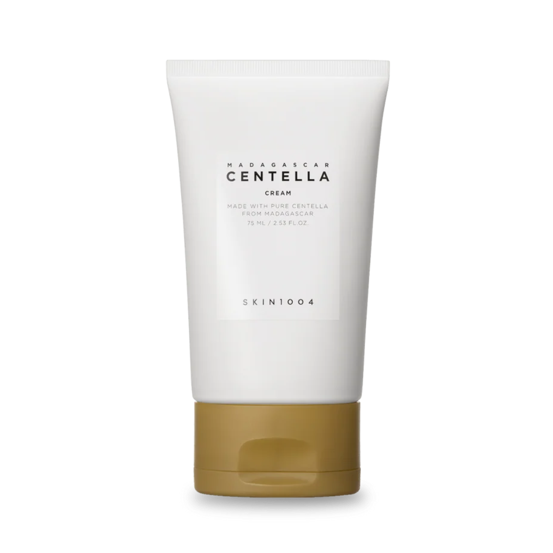 SKIN1004 Madagascar Centella Cream to lekki krem nawilżający do twarzy, który wspiera regenerację skóry, łagodzi podrażnienia i pomaga odbudować jej barierę hydrolipidową. Formuła z ekstraktem z wąkroty azjatyckiej, niacynamidem, masłem shea i ceramidem NP zapewnia komfortowe nawilżenie, odżywienie oraz ukojenie bez uczucia obciążenia.