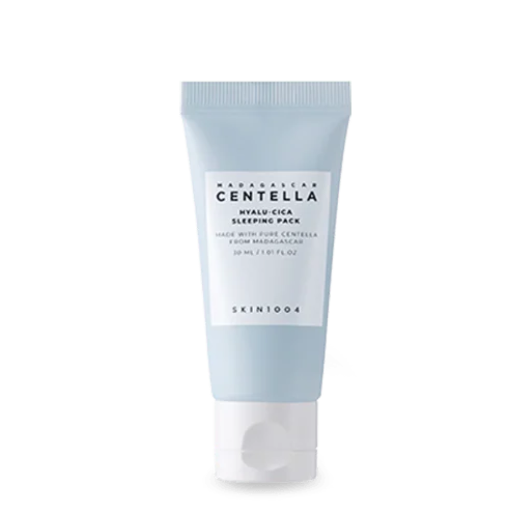 SKIN1004 Madagascar Centella Hyalu-Cica Sleeping Pack to lekka żelowa maska na noc, która intensywnie nawilża, koi podrażnienia i wspiera regenerację skóry podczas snu. Formuła z ekstraktem z wąkroty azjatyckiej, kompleksem Hyalu-Cica, niacynamidem i ceramidem pomaga przywrócić skórze komfort, miękkość i świeży, wypoczęty wygląd o poranku.